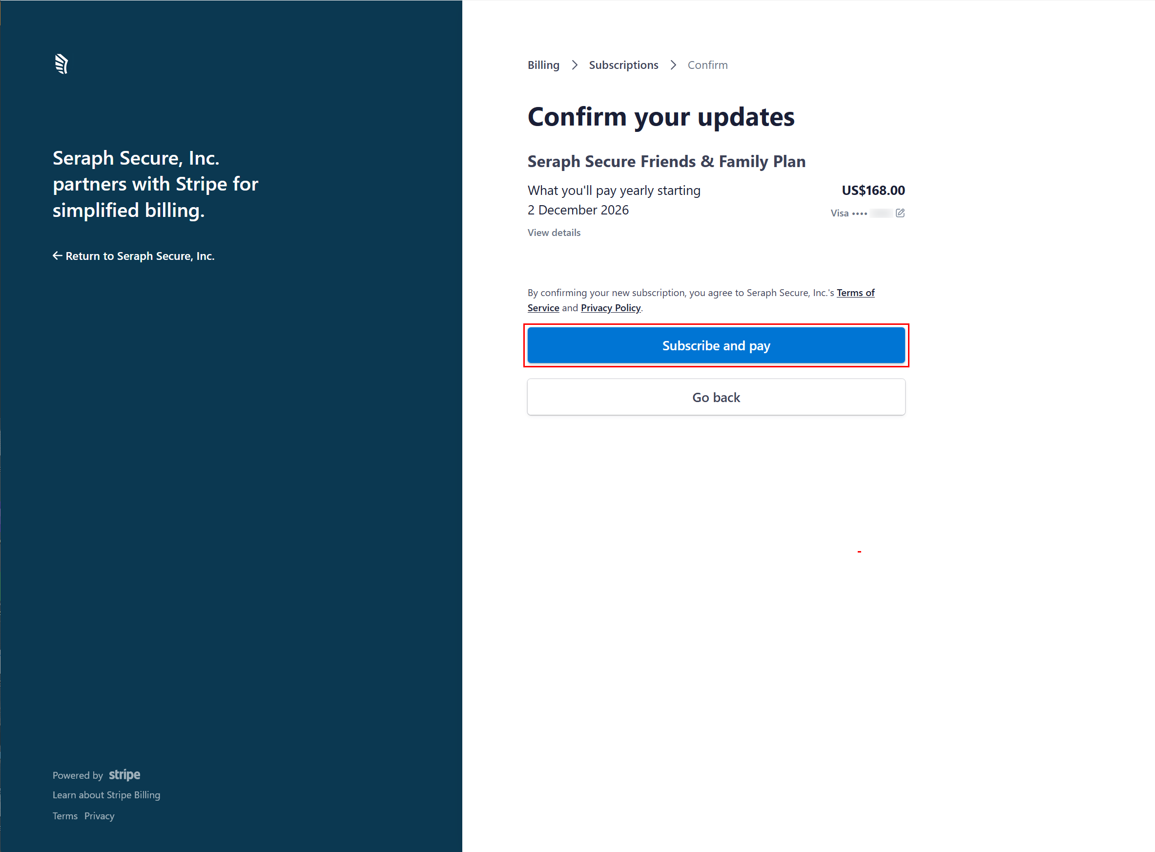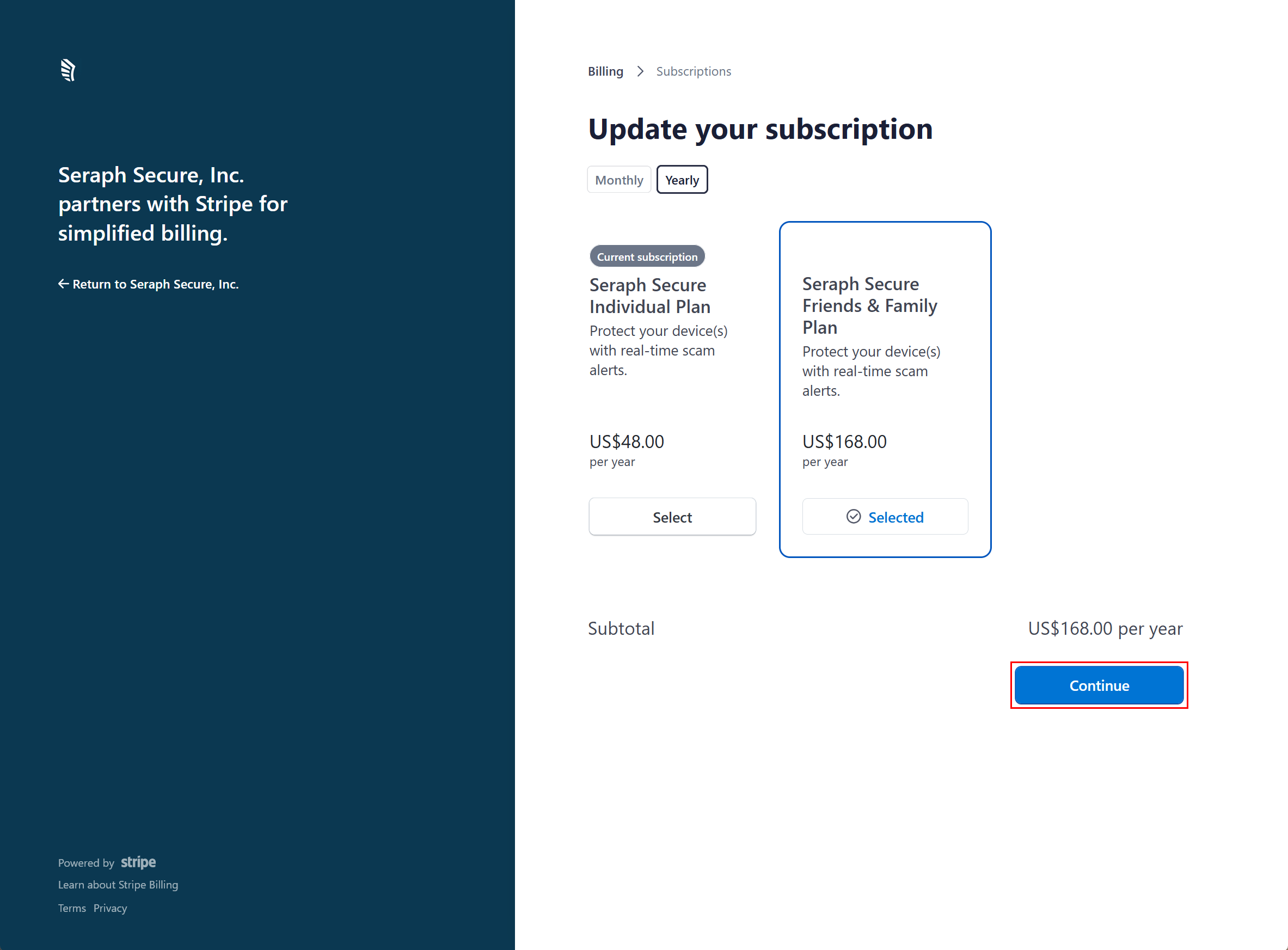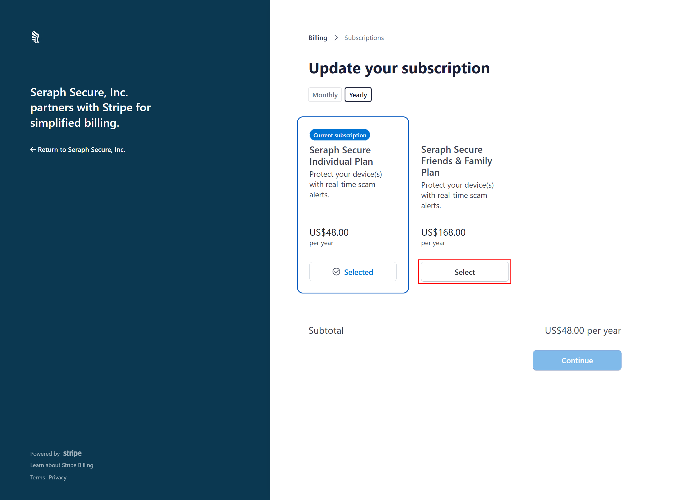 Your Seraph Secure Premium subscription can be managed from your Seraph Secure Dashboard.
