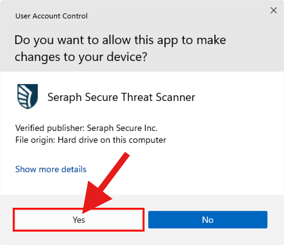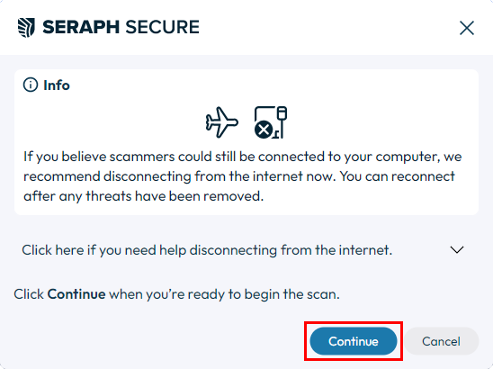 In most cases, you don't need to run a manual scan. Seraph Secure already runs in the background of you device to actively scan for and block remote connections.