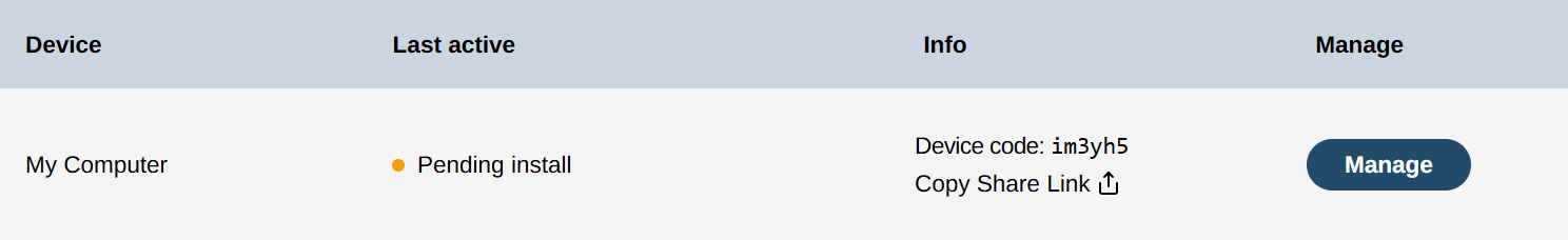 If you see • Pending Install for a device on your dashboard, this means that the device was added, but Seraph Secure Premium is not yet installed on the device.